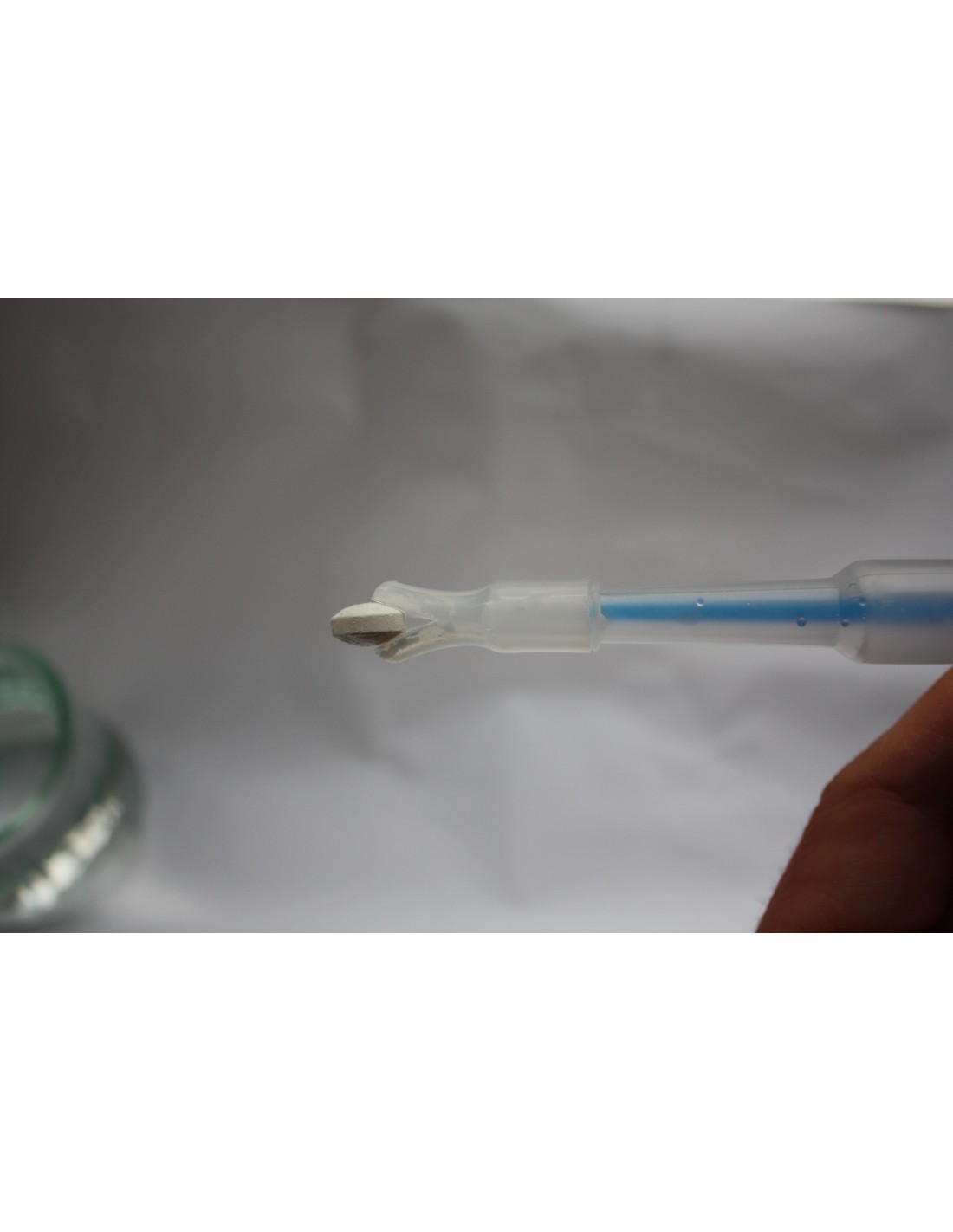 - Depois que a água é colocada na seringa, o comprimido é colocado na boca e o animal pode engoli-lo facilmente com a água.