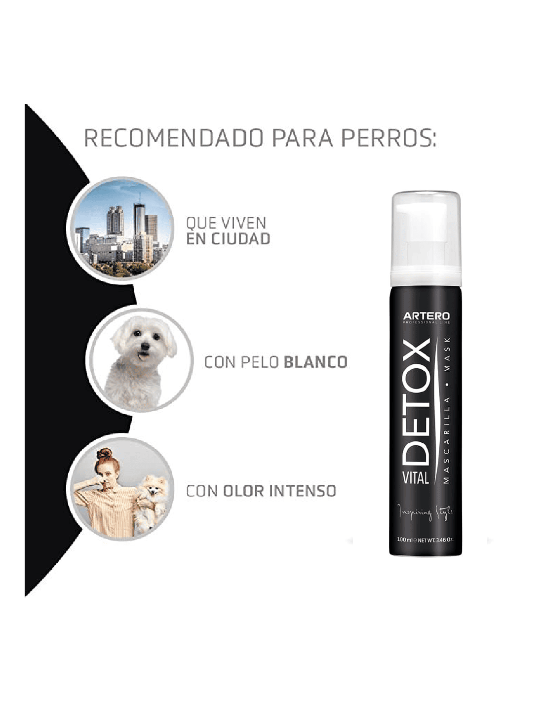 O Condicionador Artero Detox Vital destina-se principalmente a cães que vivem na cidade, raças com pelo branco e animais de estimação com odor intenso.