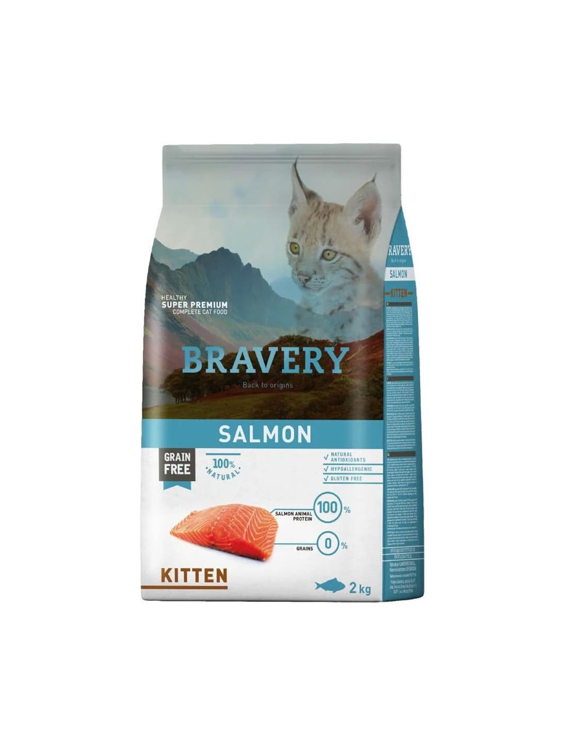Bravery é ração natural e sem cereais, é uma ração completa de salmão para gatinhos.