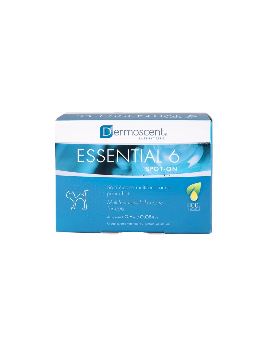 O Essential 6 spot-on é aplicado na pele, difundindo-se pela mesma e armazena-se nas glândulas sebáceas.