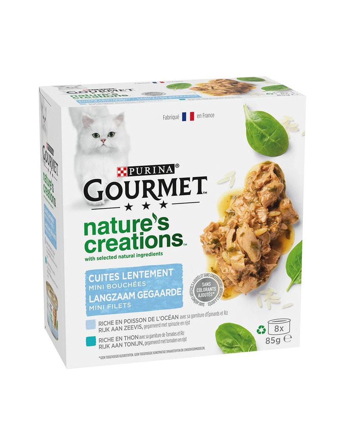 Gourmet Nature's Creations é uma gama de receitas requintadas, inspiradas na natureza, que farão as delícias do seu felino. Formulado com ingredientes naturais, cozinhados lentamente e sem adição de corantes, aromas artificiais nem conservantes.
