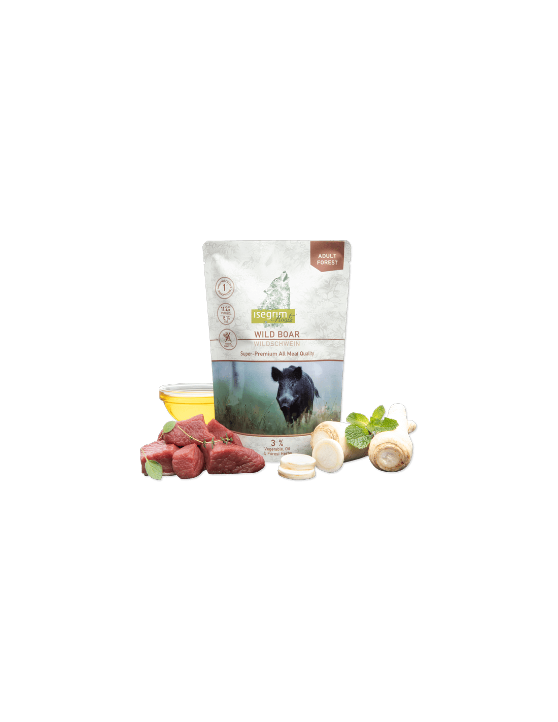 - A carne naturalmente saudável de javali como única fonte de proteína torna esta seleção uma refeição especialmente saudável. Um pouco de pastinagas saudáveis e ervas aromáticas selecionadas oferecem vitaminas e nutrientes essenciais.