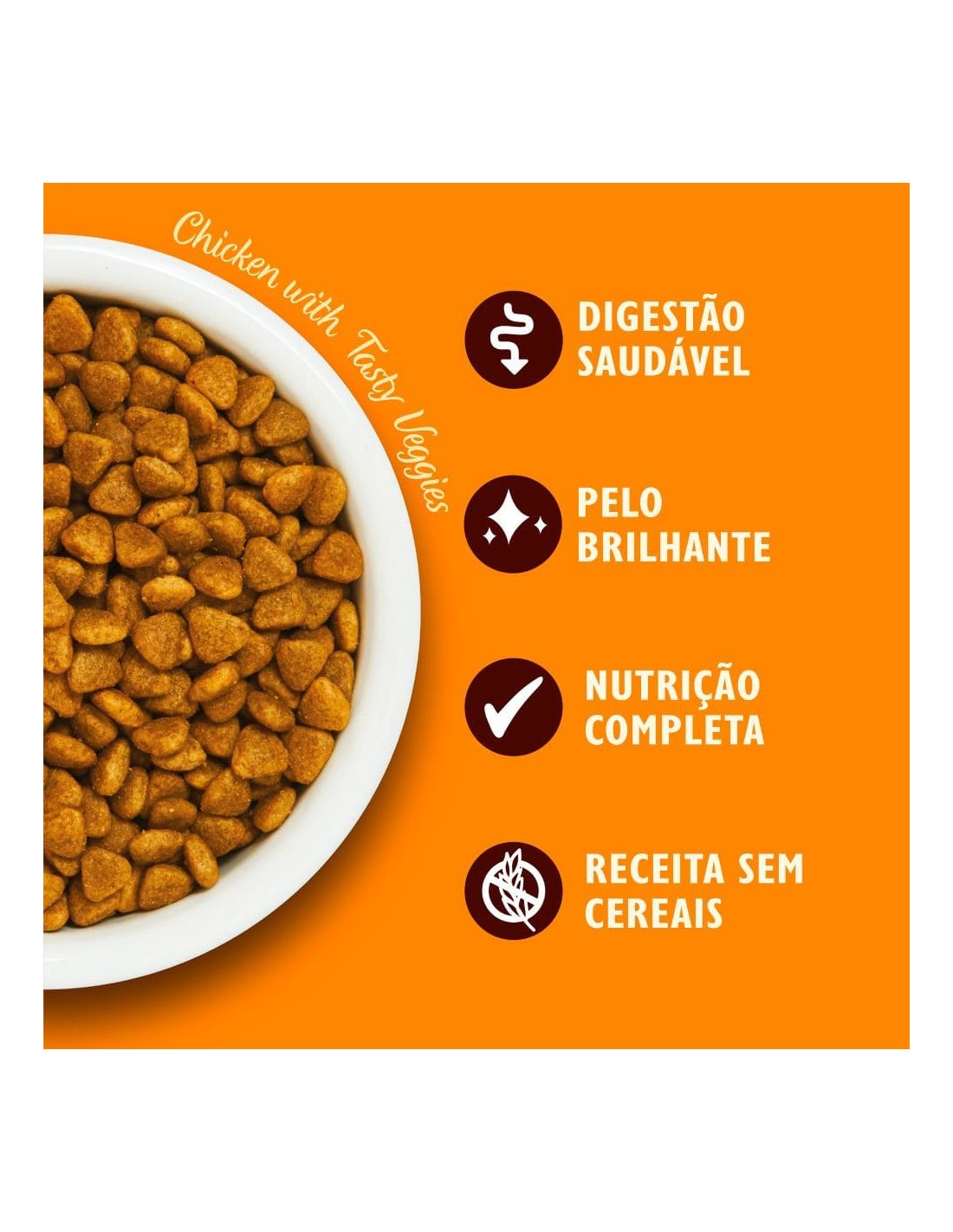 Sem farinhas de carne, contém apenas proteína de alta qualidade e ingredientes naturais.