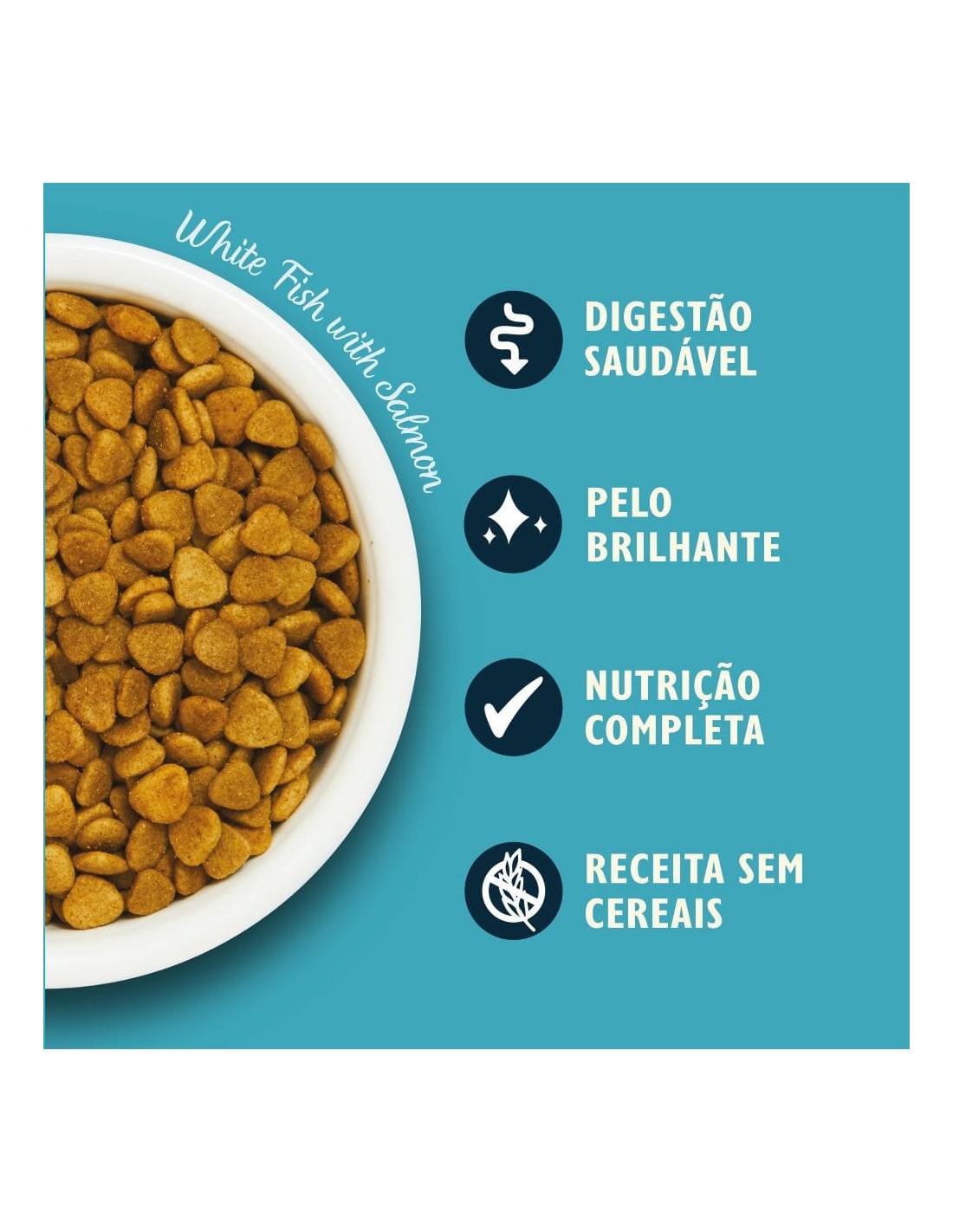 Receita sem cereais e sem farinha de carne, apenas com proteínas de alta qualidade e ingredientes naturais, com adição de vitaminas e minerais.