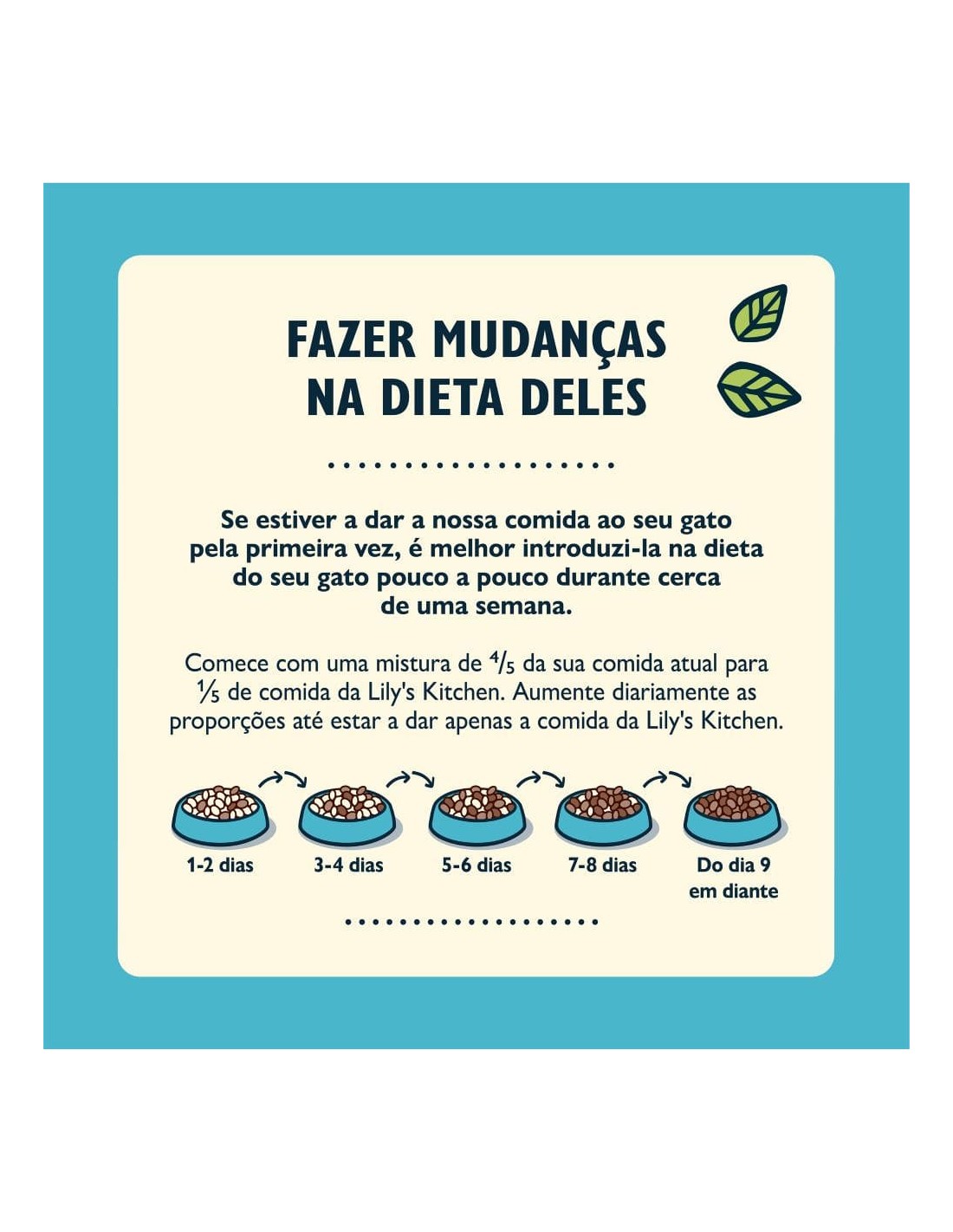 O seu cão vai precisar de tempo para se habituar ao novo alimento. Para evitar problemas de digestão, deve aumentar, gradualmente, a quantidade do novo alimento misturado com o alimento habitual.