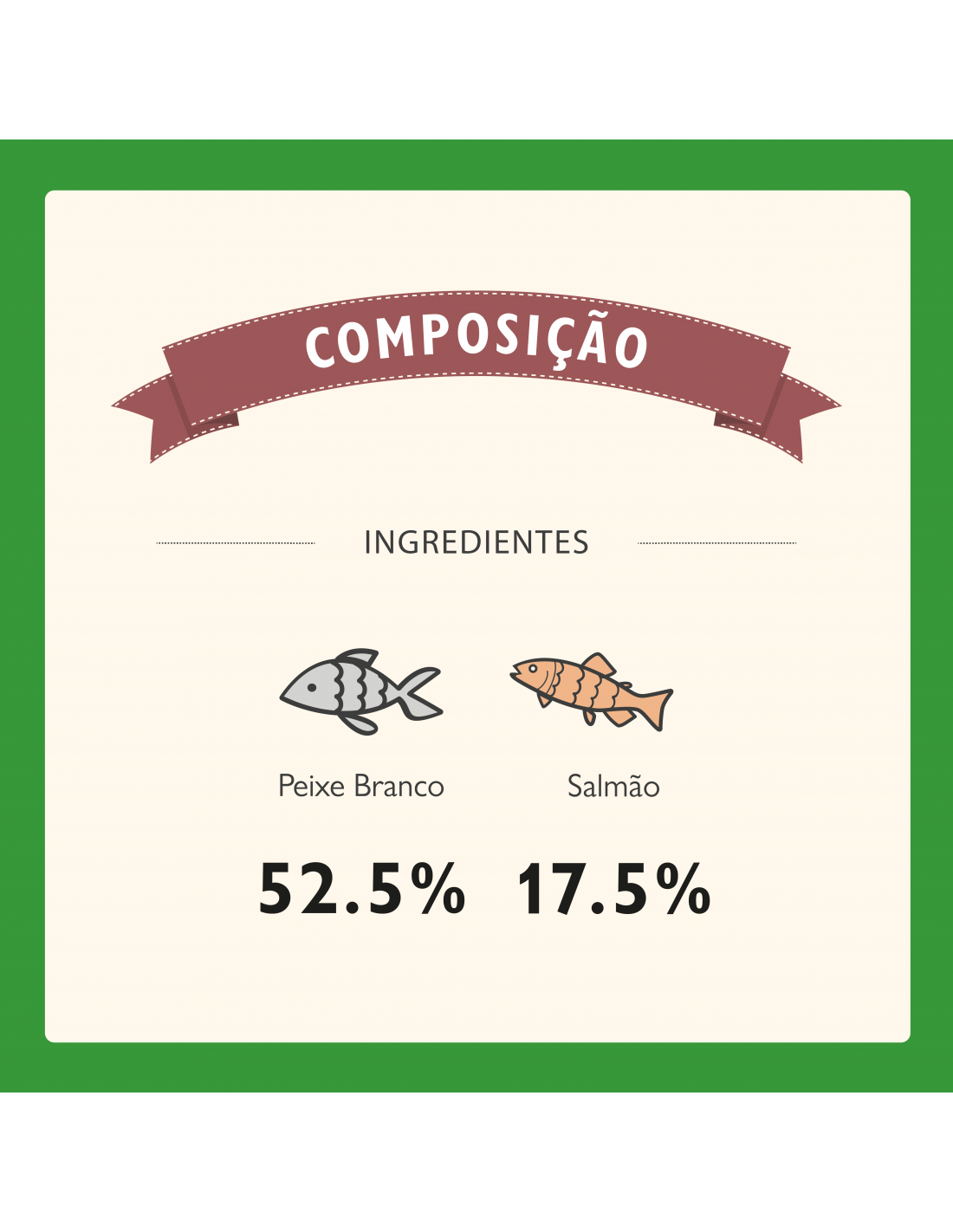 Alimento elaborado com 70% de peixe preparado fresco, de ótimo sabor e muito nutritivo.