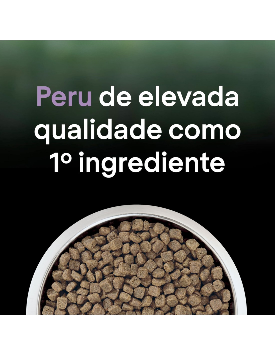 Peru (14%), proteína de aves desidratada, farinha de proteína de milho, arroz, farinha de soja, Glúten de trigo, trigo, Gordura de porco, amido de milho, ovo desidratado, sêmea de trigo, Chicória (2%), substâncias minerais, óleo de soja, celulose, óleo de peixe, vísceras organoléticas, gema de ovo em pó (0,6%), leveduras.