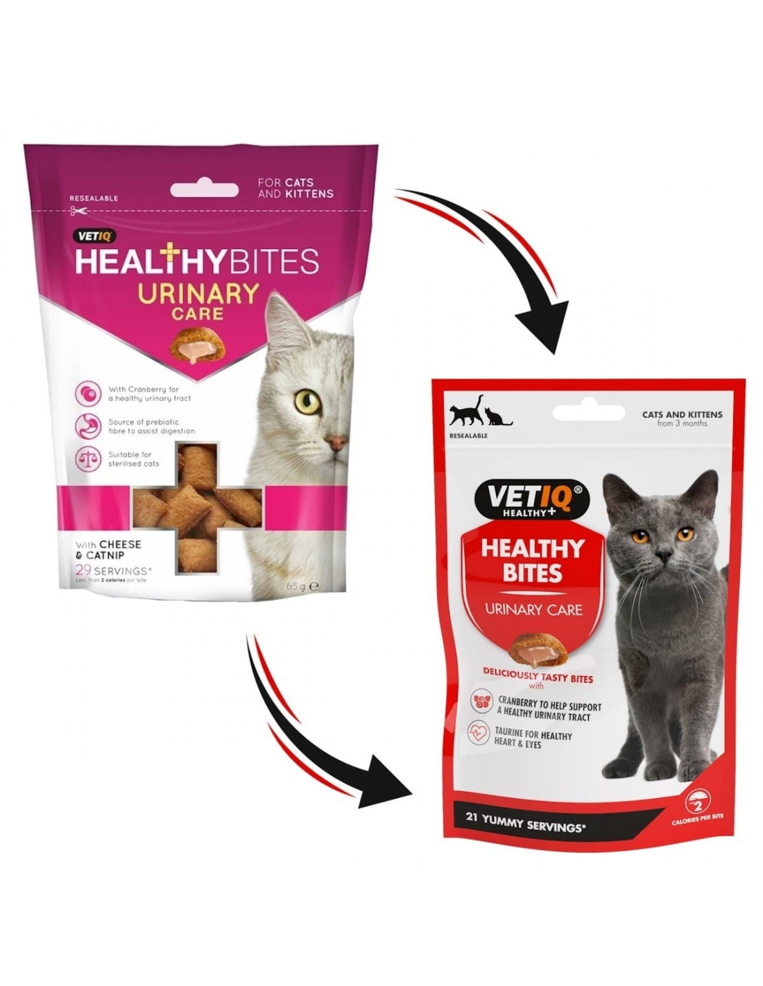 Snacks com benefícios para a saúde geral do gato. Contêm arando, para a saúde do trato urinário, taurina, para olhos e coração saudáveis, antioxidantes, para suporte do sistema imunológico, e ómega-3 e ómega-6 para a saúde da pele e do pelo. Além disso, favorecem uma boa digestão, ajudando ainda a reduzir os odores na caixa de areia do felino.